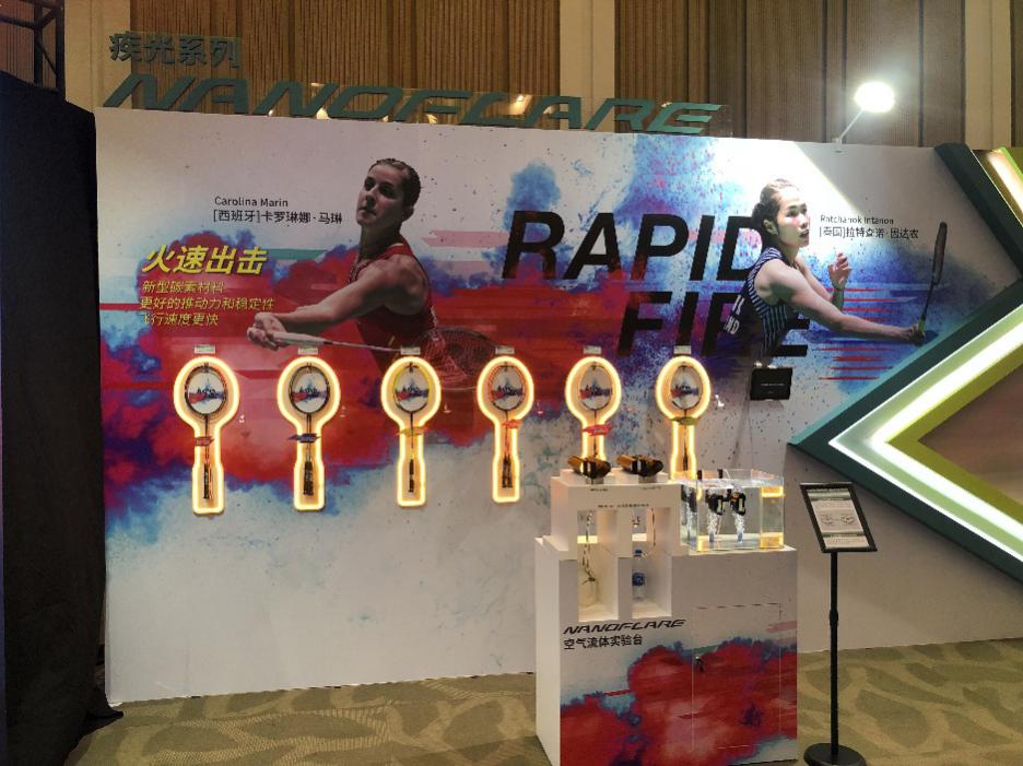 活動(dòng)現(xiàn)場(chǎng),YONEX公開了2019年的開山之作NANOFLARE疾光系列,以及系列的首發(fā)產(chǎn)品NANOFLARE疾光700。新的產(chǎn)品以全新的科技打造而成,為追求速度更快,輕盈而彈力表現(xiàn)出色的全新球拍。球拍格外推出5U版本,也是市場(chǎng)上罕見的輕頭球拍中5U的規(guī)格。系列以疾光命名,意為疾如電光。為能在比賽上火速出擊,以快速的擊球占得先機(jī)而量身定做。