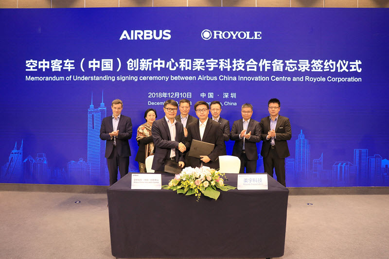 據(jù)了解,早在2018年12月,柔宇科技有限公司與空中客車(中國(guó))創(chuàng)新中心在深圳正式簽署戰(zhàn)略合作備忘錄,雙方將就柔性電子技術(shù)在飛機(jī)客艙等場(chǎng)景的應(yīng)用和商業(yè)合作開展研究,探索柔性顯示、柔性傳感在客艙等場(chǎng)景內(nèi)的應(yīng)用,在客艙環(huán)境、安全性、節(jié)能等方面做進(jìn)一步提升,為乘客打造未來化、數(shù)字化、個(gè)性化的乘機(jī)體驗(yàn)。