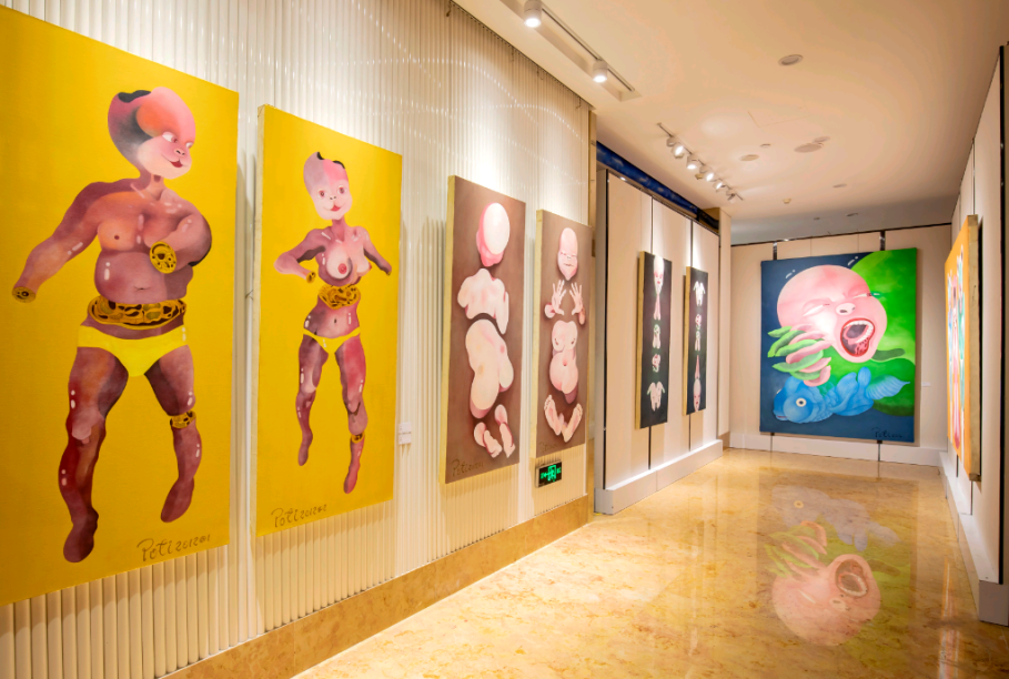 他從不把自己定位在某種藝術(shù)類別里,唯一能夠辨認(rèn)其創(chuàng)作概念的只有“當(dāng)代”一詞,他將自己靈魂深處的叛逆與當(dāng)代藝術(shù)的批判精神結(jié)合,通過(guò)鮮艷的色彩表達(dá)出來(lái)。畫(huà)面中那些擁有怪異表情、扭曲肢體,樣貌分崩離析的“人”,帶給觀眾的是獨(dú)樹(shù)一幟的視覺(jué)感觸,同時(shí)也呼應(yīng)著作者內(nèi)心的沖突與思考。