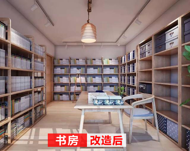 改造后的書房,三面書柜,足夠解決儲(chǔ)存空間不足的問(wèn)題;有一塊專門用于辦公的區(qū)域,閑時(shí)可以坐在懶人椅上看看書,這也是非常寫意的生活。