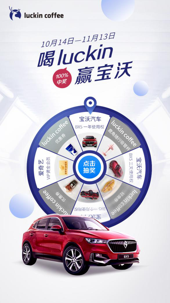 瑞幸咖啡攜手寶沃汽車(chē)推出“喝luckin贏寶沃”活動(dòng)