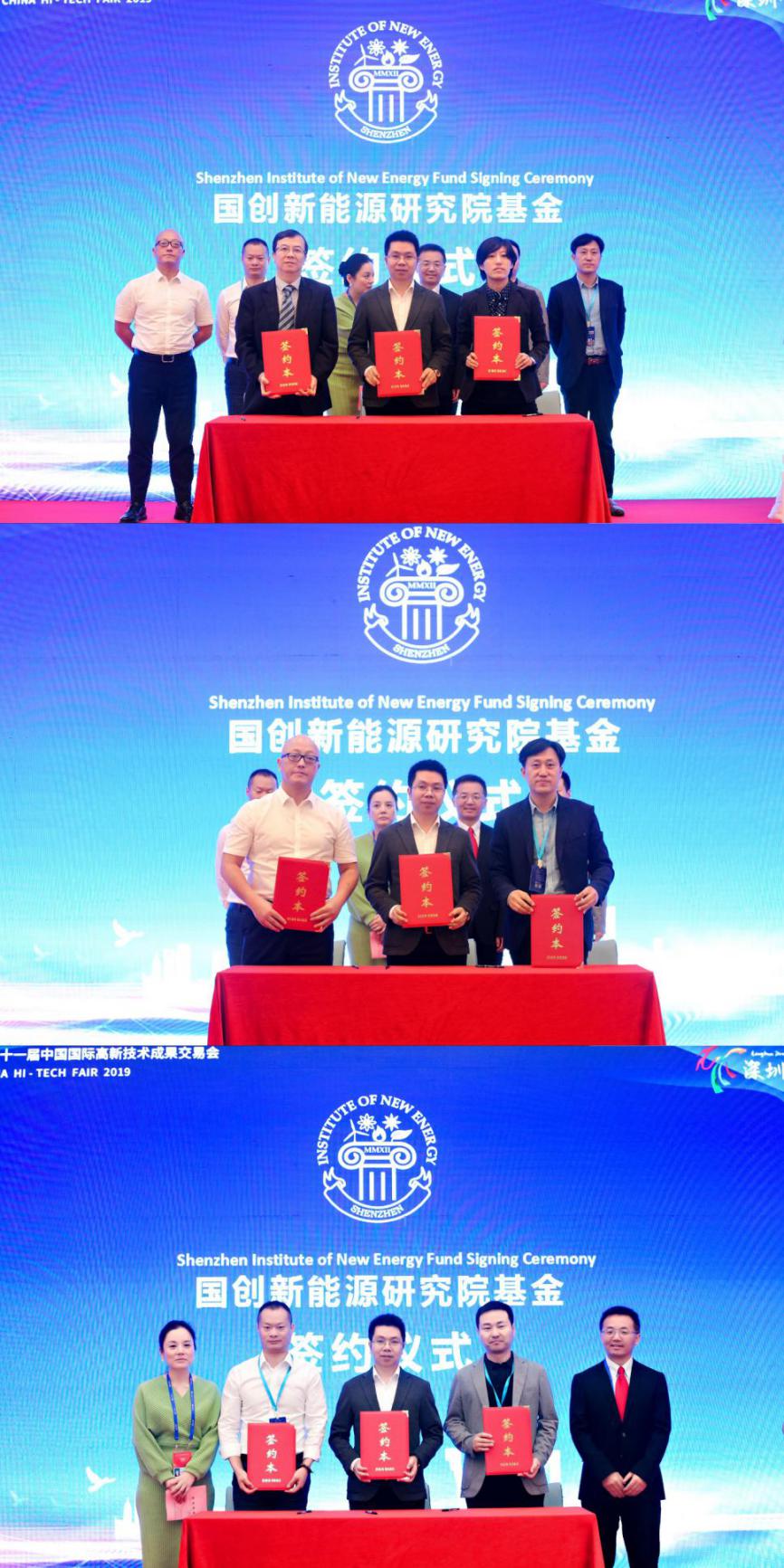 國(guó)創(chuàng)新能源研究院從創(chuàng)建以來(lái),已經(jīng)孵化了8家企業(yè),圍繞這些孵化企業(yè),國(guó)創(chuàng)新能源研究院與賽馬資本、華創(chuàng)深大、漢唐資本、錦泓資本、東方守正(深圳)投資管理有限公司、江蘇銀行深圳分行,共6家聯(lián)合成立了“國(guó)創(chuàng)新能源研究院產(chǎn)業(yè)基金”,并在2019國(guó)際前沿科技高峰論壇正式簽約,由國(guó)創(chuàng)新能源研究院投資部部長(zhǎng)林龍清代表簽署,國(guó)創(chuàng)新能源研究院茆勝院長(zhǎng)、尹輝副院長(zhǎng)上臺(tái)見(jiàn)證。