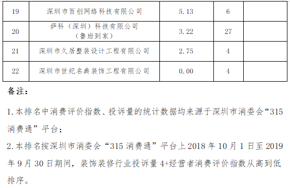 此外,本次公布的深圳市消委會裝飾裝修行業(yè)消費評價指數(shù)排行榜中,深圳新家生活科技服務(wù)有限公司(9.00)、深圳市百創(chuàng)網(wǎng)絡(luò)科技有限公司(5.13)和薩科(深圳)科技有限公司(魯班到家)(3.22)3家經(jīng)營者未建立投訴處理便捷通道,投訴處理效率低于其他經(jīng)營者,增加了消費者維權(quán)成本。