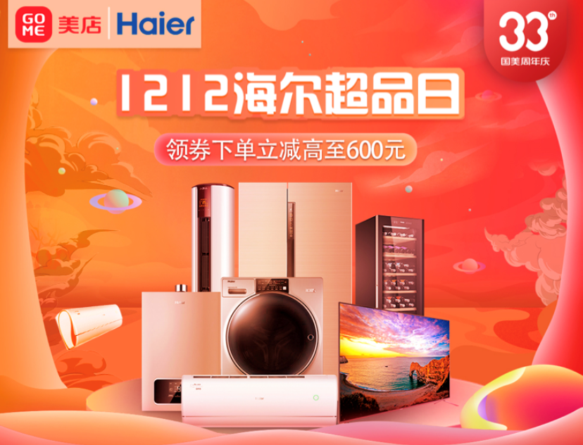 12月12日-15日,33周年生日之際,國美與海爾再度攜手,國美美店帶來1212海爾超級品牌日活動,涵蓋了海爾冰箱、洗衣機(jī)、空調(diào)、電視、廚房衛(wèi)浴等多個品類豐富產(chǎn)品,多重優(yōu)惠福利、六大承諾保障、延保清洗服務(wù),其中多個年度爆款值得期待。
