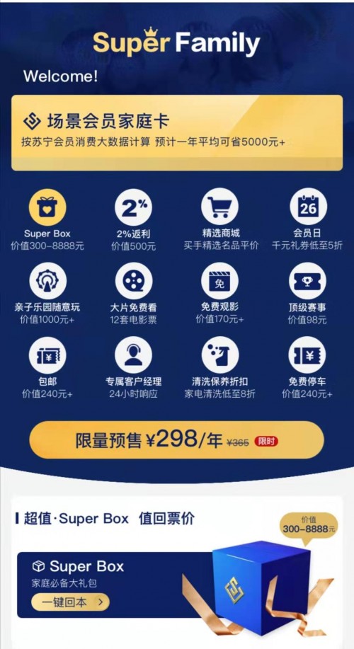 年初,蘇寧易購(gòu)?fù)瞥?S UPER VIP專屬會(huì)員特權(quán),母嬰家庭只需辦理價(jià)值149元的 Super VIP會(huì)員卡,再加150元,即最高花費(fèi)299元,就能在蘇寧紅孩子游樂不限時(shí)間、不限次數(shù)的玩上一整年。貫穿全年的紅粉會(huì)員答謝會(huì),通過海量母嬰正品、專業(yè)的育嬰師服務(wù)和特色會(huì)員福利活動(dòng)圈粉超千萬。而最新升級(jí)的蘇寧Super Family會(huì)員更是以承包一家人的衣食住行為出發(fā)點(diǎn),融合了蘇寧體育、蘇寧影城、蘇寧金融、蘇寧紅孩子、蘇寧廣場(chǎng)等業(yè)態(tài),共12項(xiàng)特權(quán),發(fā)力會(huì)員場(chǎng)景零售,打造了完善的會(huì)員生態(tài)服務(wù)。