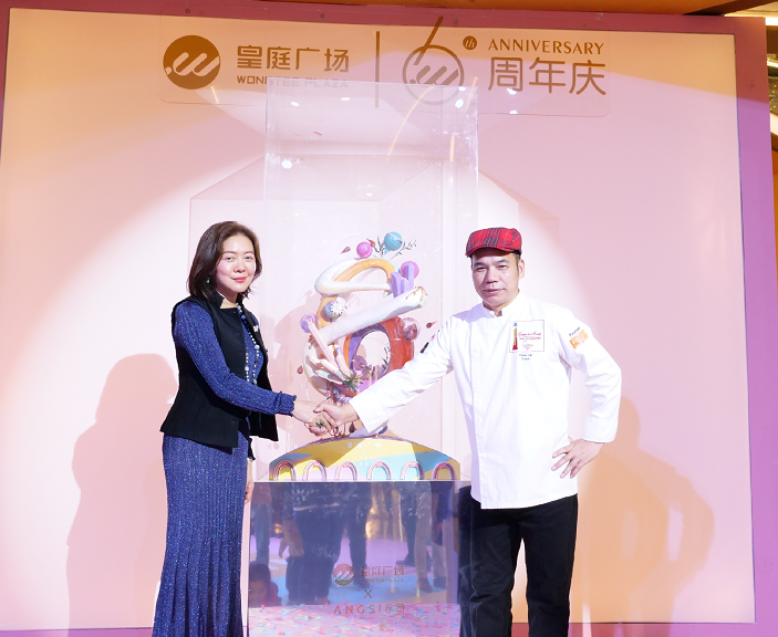 此次六周年的生日蛋糕是由世界西點(diǎn)大師兼ANGSI昂司西點(diǎn)研發(fā)總監(jiān)林紹特別為深圳皇庭廣場(chǎng)慶生的匠心之作。蛋糕靈感來(lái)自浩瀚銀河系,香甜奶油通過(guò)水晶柱環(huán)繞著彩色數(shù)字6,寓意著皇庭廣場(chǎng)6年來(lái)致力于為顧客提供貼心服務(wù)的宗旨。緊貼在數(shù)字6之上的彩色水晶球,包裹著來(lái)自時(shí)尚、數(shù)碼等不同潮流領(lǐng)域的產(chǎn)品,水晶球之間相互輝映,閃耀著各自時(shí)尚的魅力,傳遞對(duì)生活的美好追求。