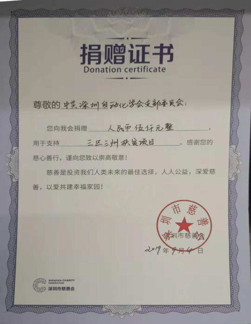 作為深圳成立最早的協(xié)會,深圳自動化學(xué)會一直將學(xué)會的黨建工作列為重點(diǎn),適時(shí)開展活動,讓學(xué)會中企業(yè)單位暫無黨組的流動黨員們有一個(gè)“溫馨的家”。2019年,深圳自動化學(xué)會先后組織的活動有:組織會員單位的入黨積極分子參加了深圳市社會組織第一期發(fā)展對象培訓(xùn)班;組織會員單位黨員集體參觀有關(guān)深圳改革開放40周年的專題展覽《大潮起珠江》;組織會員單位積極開展扶貧捐贈活動,有捐款、有圖書,還有電腦等教學(xué)設(shè)備,受到了相關(guān)單位的表彰和肯定。