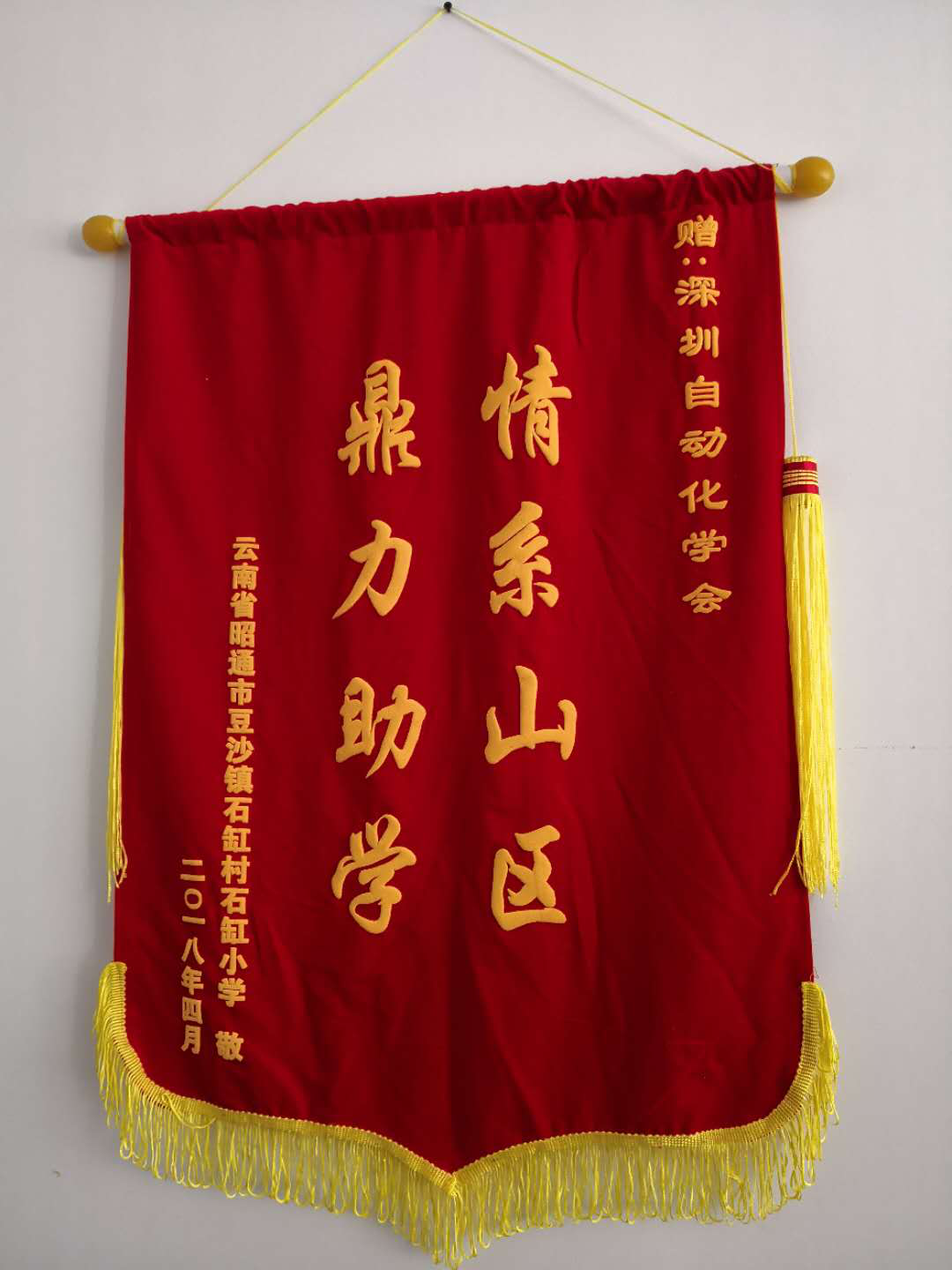 (學(xué)會收到被捐贈小學(xué)的錦旗)