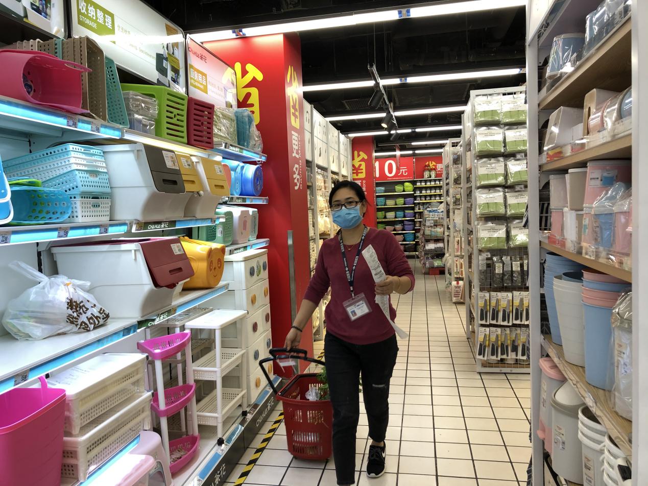 “現(xiàn)在手上這個單有24個商品需要揀貨,這還不算大單,我們有接到過一單上百個商品的,還有總價超過3000元的訂單呢。家樂福梅林店的賣場面積大概是5000平方米,每天上下2層樓跑多少趟具體倒是沒有統(tǒng)計過,但像現(xiàn)在特殊時期,我們一天在網(wǎng)上接到的‘配送到家’服務(wù)訂單基本都要超過800單,有時候會到1000單。”