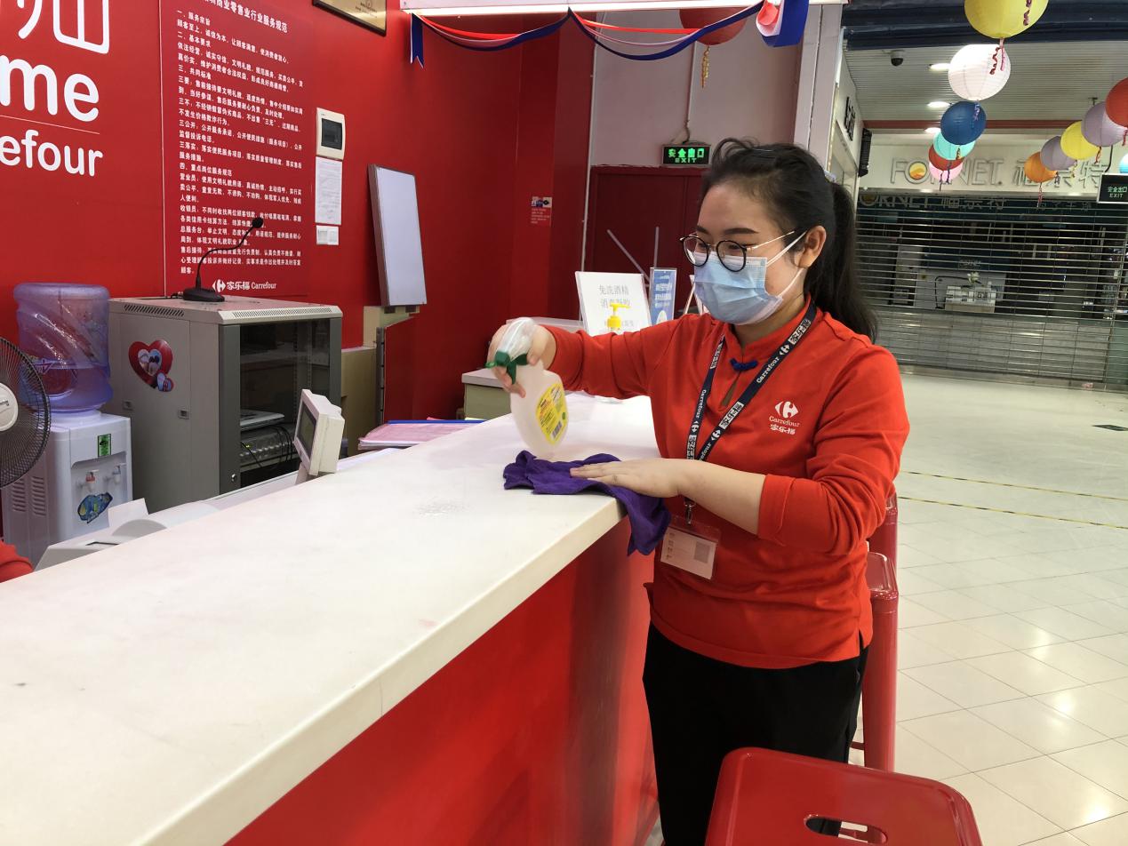 陳翠姣這次被分配到了超市收銀部門,由于是標準化操作,加上使用移動支付的顧客較多,技術(shù)難度不大,在資深員工的耐心指導(dǎo)下,她上手很快。陳翠姣表示對新崗位很滿意,她說,賦閑在家太久了,這次能換崗上任,很開心,“尤其是能夠加入到保障城市民生供應(yīng)的大型商超,非常有意義?!毕挛?點,陳翠姣為服務(wù)中心柜臺做第三次消毒清潔后,便可以結(jié)束今日的早班工作,打卡下班了。