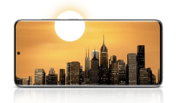 外觀方面,S20系列采用了Infinity-O全面屏設(shè)計(jì)。手機(jī)正面屏占比很高,上下邊框都做到極窄,視覺沖擊相當(dāng)震撼。相對而言,這種中間挖孔的設(shè)計(jì),在各種挖孔屏方案中顏值算是最高的。