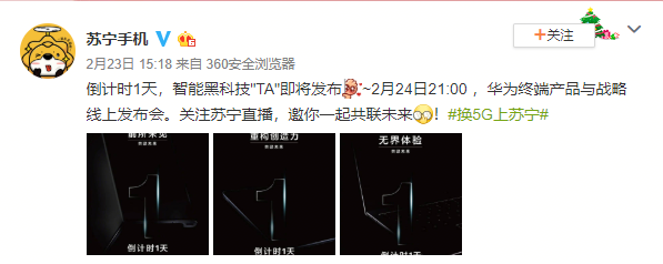 今晚21點(diǎn)多款華為新品將在蘇寧直播重磅亮相,除了新品發(fā)布外,蘇寧直播還將進(jìn)行開箱直播,讓用戶直觀感知到華為Mate Xs折疊屏產(chǎn)品。