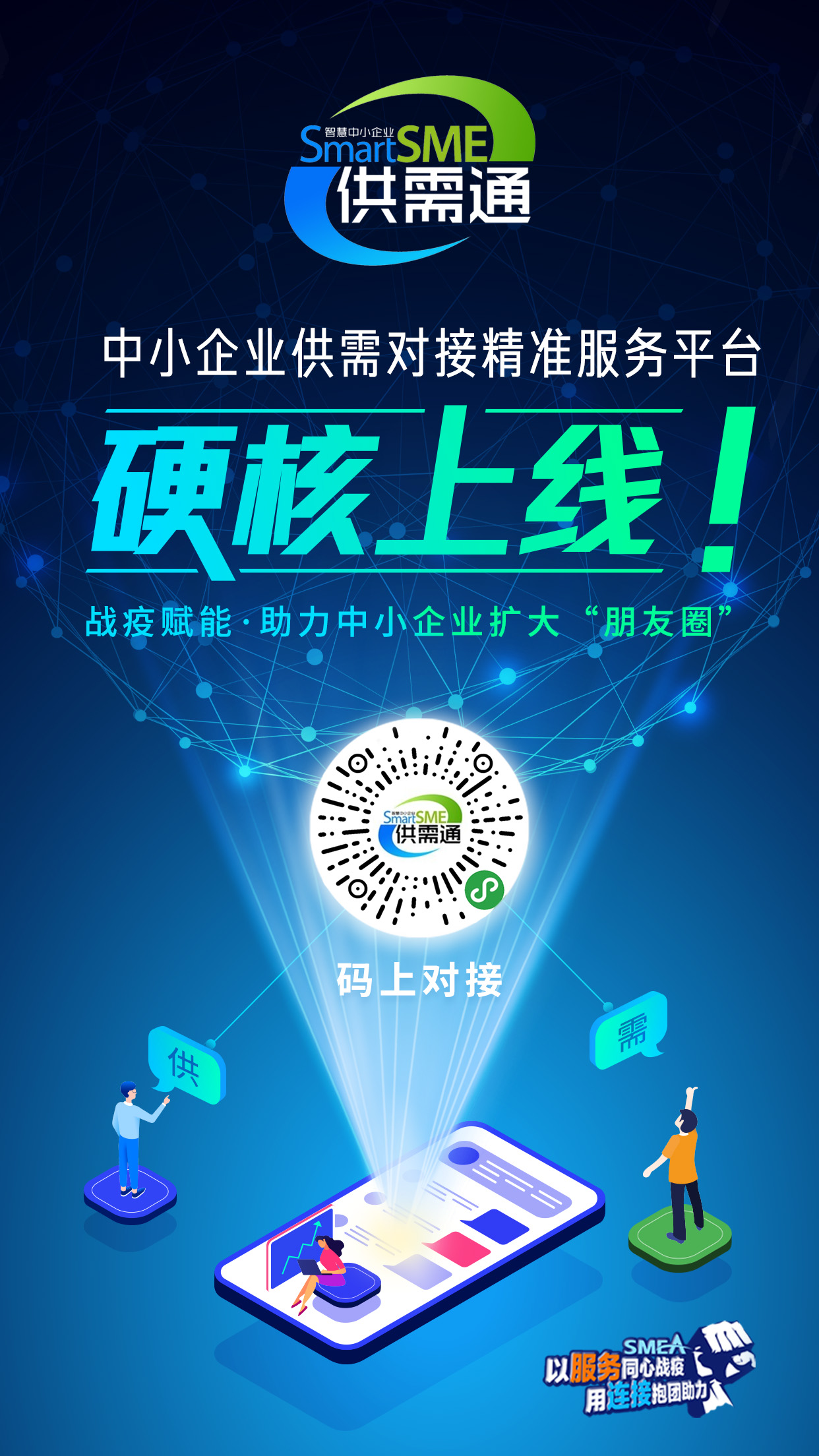 “ SmartSME供需通”小程序的上線,將實效助推中小企業(yè)之間供應(yīng)和需求的高效率、高質(zhì)量對接。據(jù)了解,目前在供需通平臺上可發(fā)布的供需類別包括:產(chǎn)品/原材料/設(shè)備、寫字樓/廠房/招商招租、企業(yè)服務(wù)/商務(wù)服務(wù)等,相關(guān)供應(yīng)和需求信息都可以在平臺上快速發(fā)布及時得到響應(yīng)。操作也非常簡單,掃描下方小程序碼即可快速提交企業(yè)供需信息。