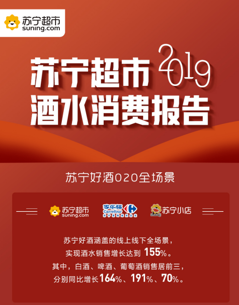 深圳新聞網(wǎng)2020年3月20日訊 昨日,蘇寧超市發(fā)布2019年度酒水消費報告。數(shù)據(jù)顯示,2019年,蘇寧好酒全渠道銷售同比增長155%。其中,白酒、啤酒、葡萄酒銷售分別同比增長164%、191%、70%??v觀整年,家樂福、飛天茅臺酒、全場景等成2019年蘇寧酒水關(guān)鍵詞,這也進一步凸顯了蘇寧超市酒水生態(tài)圈建設(shè)的卓越成效。