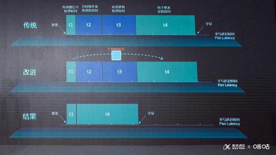 為了實(shí)現(xiàn)這個(gè)突破,智能本與E Ink原廠(chǎng)通力合作、聯(lián)合調(diào)優(yōu),在業(yè)界首次實(shí)現(xiàn)了墨水屏手寫(xiě)處理芯片化(T1000芯片),直接將寫(xiě)顯延遲中的軟件處理部分通過(guò)芯片實(shí)現(xiàn),大大的縮短了墨水屏的寫(xiě)顯延遲。當(dāng)前,在咪咕訊飛智能本青春版中,寫(xiě)顯延遲僅30毫秒左右。在用戶(hù)直接的主觀(guān)體驗(yàn)測(cè)試中,已經(jīng)做到了“幾乎無(wú)延遲感”、“像真紙一樣的書(shū)寫(xiě)速度”。