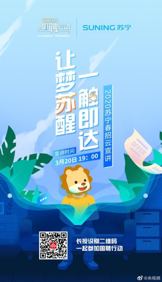 作為與民生、就業(yè)密切相關(guān)的大型零售企業(yè),蘇寧早在2月8日便啟動了無接觸春招,3月20日,蘇寧更是通過央視頻國聘行動開啟線上宣講。目前,線上面試與offer發(fā)放正在持續(xù)進行中。