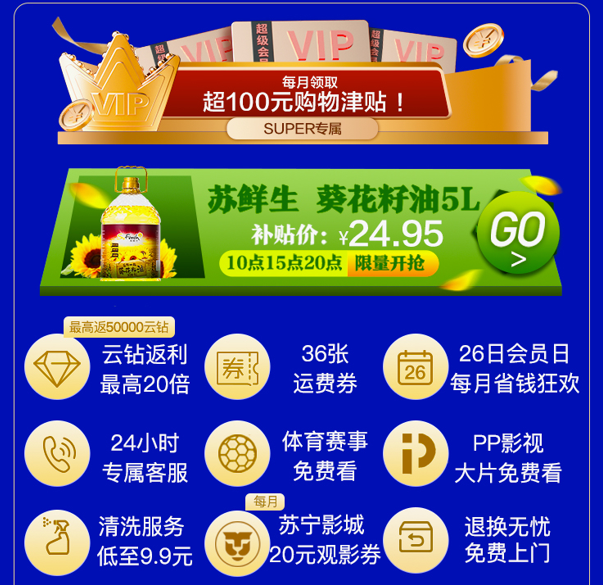 通過登陸蘇寧易購APP,搜索關(guān)鍵詞“白衣天使”,進入自動申領(lǐng)頁面。 SUPER會員是蘇寧為用戶打造的專屬會員體系,能夠滿足“白衣天使”們視頻娛樂、生活購物、服務(wù)等全場景的需求。