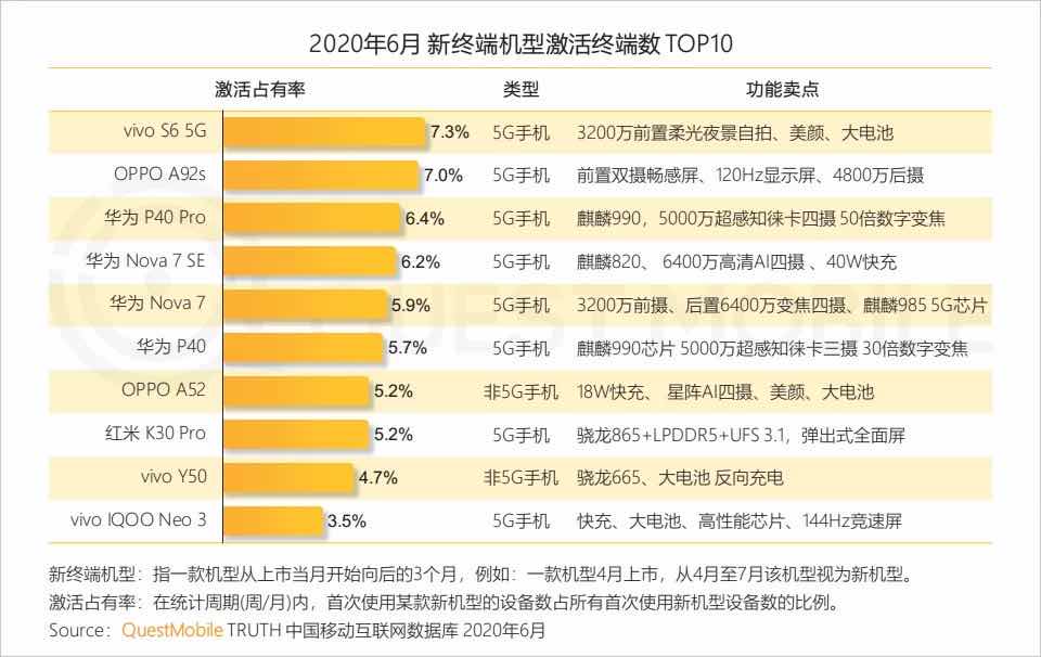 近期發(fā)布的《QuestMobile中國(guó)移動(dòng)互聯(lián)網(wǎng)2020半年大報(bào)告》顯示,“2020年6月新終端機(jī)型激活終端數(shù)Top10”的榜單中vivo S系列首款5G手機(jī)——vivo S6憑借3200萬(wàn)(像素)前置柔光夜景自拍、美顏(功能)及大電池榮登榜首。值得一提的是,S6的迭代機(jī)型vivo S7目前也已經(jīng)曝光,將于8月3日正式發(fā)布。