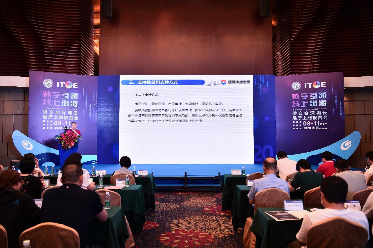 見圳客戶端·深圳新聞網(wǎng)2020年8月12日訊(記者 張俊達(dá))昨天,“數(shù)字引領(lǐng)?線上出海”僑交會(huì)深圳云展廳上線報(bào)告會(huì)在深圳綠景酒店三樓會(huì)議廳成功召開。以"數(shù)字引領(lǐng)?線上出海,提升企業(yè)國(guó)際競(jìng)爭(zhēng)力"為主題,本次報(bào)告會(huì)重點(diǎn)展示“ITOE僑交會(huì)深圳云展廳”創(chuàng)新會(huì)展模式、解讀疫情之下外貿(mào)中小企業(yè)如何通過(guò)數(shù)字化轉(zhuǎn)型,并帶來(lái)2020年度最新中央外經(jīng)貿(mào)發(fā)展專項(xiàng)資金政策宣講。深圳多個(gè)商會(huì)、行業(yè)協(xié)會(huì),以及僑企、港企、深圳外向型企業(yè)、展覽公司近200名代表參加報(bào)告會(huì)。