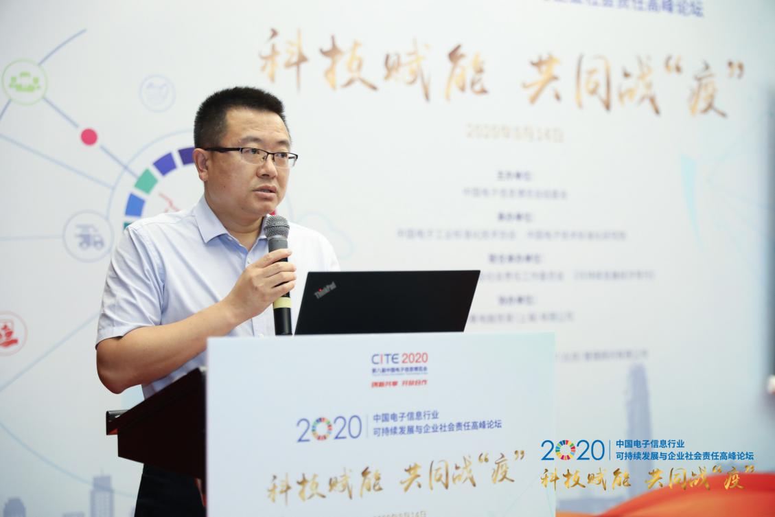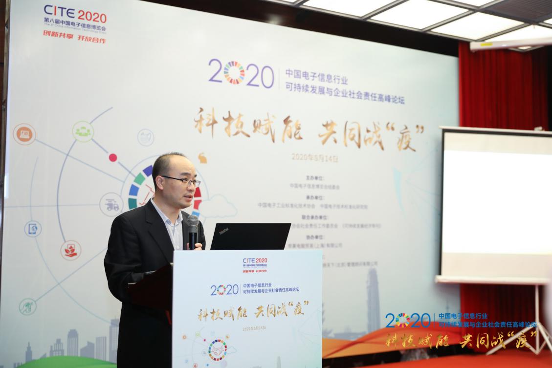 工業(yè)和信息化部產(chǎn)業(yè)政策與法規(guī)司綜合處處長徐華在致辭中表示:面對新型冠狀病毒肺炎疫情的洶涌來襲,電子信息行業(yè)企業(yè)積極承擔社會責任,構(gòu)筑起了戰(zhàn)“疫”堅固防線,充分發(fā)揮自身專業(yè)優(yōu)勢,運用信息技術(shù)能力,為抗擊疫情、復(fù)工復(fù)產(chǎn)做出了積極貢獻。產(chǎn)業(yè)政策與法規(guī)司作為工業(yè)和信息化部負責推動企業(yè)社會責任建設(shè)的主管司局,為深入貫徹落實黨中央國務(wù)院關(guān)于企業(yè)社會責任工作的要求,進一步加強新時代工業(yè)通訊業(yè)企業(yè)社會責任的建設(shè),2020年,我們積極推進《關(guān)于推動工業(yè)通信業(yè)企業(yè)社會責任指導(dǎo)意見》的研究與出臺,探索建立企業(yè)社會責任意識和能力提升機制,推動企業(yè)社會責任培訓(xùn)和宣傳交流工作。同時,通過搭建企業(yè)社會責任公共服務(wù)平臺,為宣傳企業(yè)社會責任政策和為企業(yè)開展社會責任信息披露及溝通交流提供服務(wù)。