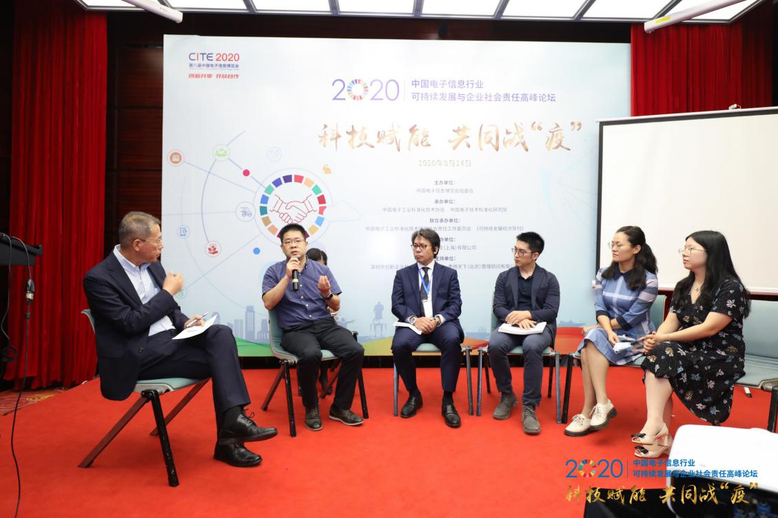 為更加全面生動地展現(xiàn)企業(yè)在抗擊疫情的典型實踐,論壇特別組織專題研討活動, 《可持續(xù)發(fā)展經(jīng)濟導(dǎo)刊》社長兼主編于志宏主持,中興通訊股份有限公司副總裁、無線架構(gòu)總經(jīng)理段向陽、索尼精密部件(惠州)有限公司董事總經(jīng)理小林克彥、騰訊公益慈善基金會項目總監(jiān)鄧江波、富士施樂高科技(深圳)有限公司CSR部長劉美華、深圳市創(chuàng)新企業(yè)社會責任促進中心主任曾亞琳共同參與研討,各位嘉賓積極分享企業(yè)的優(yōu)秀實踐,交流對科技抗疫的觀點與看法,為電子信息行業(yè)的責任價值創(chuàng)造與創(chuàng)新帶來思考與提供借鑒。