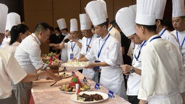 嘉美軒飲食集團(tuán)總裁張品關(guān)代表致詞提到:集團(tuán)致力于弘揚(yáng)潮汕飲食文化,促進(jìn)潮州菜傳承與創(chuàng)新,而飲食文化傳承離不開烹飪?nèi)瞬诺膲汛螅煜录蚊儡帍N藝學(xué)院,旨在挖掘培養(yǎng)更多烹飪?nèi)瞬?,承辦本次競賽活動就是響應(yīng)廣東省“粵菜師傅”工程實(shí)施方案,充分利用深圳區(qū)位優(yōu)勢,選拔優(yōu)秀烹飪?nèi)瞬?,把“深派風(fēng)味菜”的招牌擦得更亮、叫得更響。