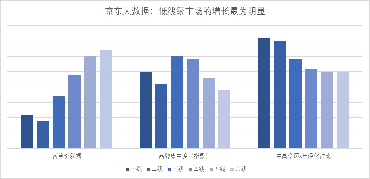 京東大數(shù)據(jù)從“客單價(jià)漲幅、品牌集中度、高學(xué)歷及年輕人占比”等指標(biāo)對(duì)1 -6線消費(fèi)者的月餅購(gòu)買數(shù)據(jù)進(jìn)行分析發(fā)現(xiàn),京東月餅消費(fèi)者大學(xué)及以上學(xué)歷占比70%;90后用戶占比65%;中高消費(fèi)水平用戶占比98%;此外需要注意到中低線市場(chǎng)“小鎮(zhèn)”中等收入人群的崛起,這些年輕化、高學(xué)歷、懂品味的人群正在引導(dǎo)整體消費(fèi)市場(chǎng)從追求性價(jià)比到品牌、品味等更高追求的轉(zhuǎn)變。