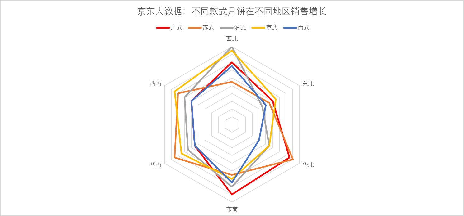 此前有報(bào)告顯示,消費(fèi)者購(gòu)買月餅渠道更多樣化,已然形成線上為主、線下為輔的趨勢(shì)。而隨著京東渠道的滲透、物流的下沉,很多偏遠(yuǎn)地區(qū)的線上消費(fèi)比例也越來(lái)越大,比如西北地區(qū)消費(fèi)者購(gòu)買廣式和京式月餅的同比增長(zhǎng)分別達(dá)160%和190%,線上銷售的方式打破了區(qū)域間的地理限制,跨區(qū)域嘗鮮成為潮流,而且促進(jìn)了全國(guó)各地節(jié)( chi)日( huo)的交流。