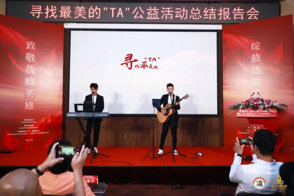 活動尾聲,會場響起一首滿懷敬意及祝愿的歌聲——尋找最美的“TA”公益活動主題曲《無名英雄》。這是由畢業(yè)于中國音樂學(xué)院并多次參演央視春晚、與郎朗同臺演奏的孫培軒與民謠吉他創(chuàng)作歌手強(qiáng)曉龍共同親情獻(xiàn)唱的原創(chuàng)戰(zhàn)疫歌曲,現(xiàn)場的各位嘉賓及觀眾無不感動,感謝無名的英雄們用那堅(jiān)如磐石的雙肩,踐行著初心使命及鏗鏘有力的誓言。