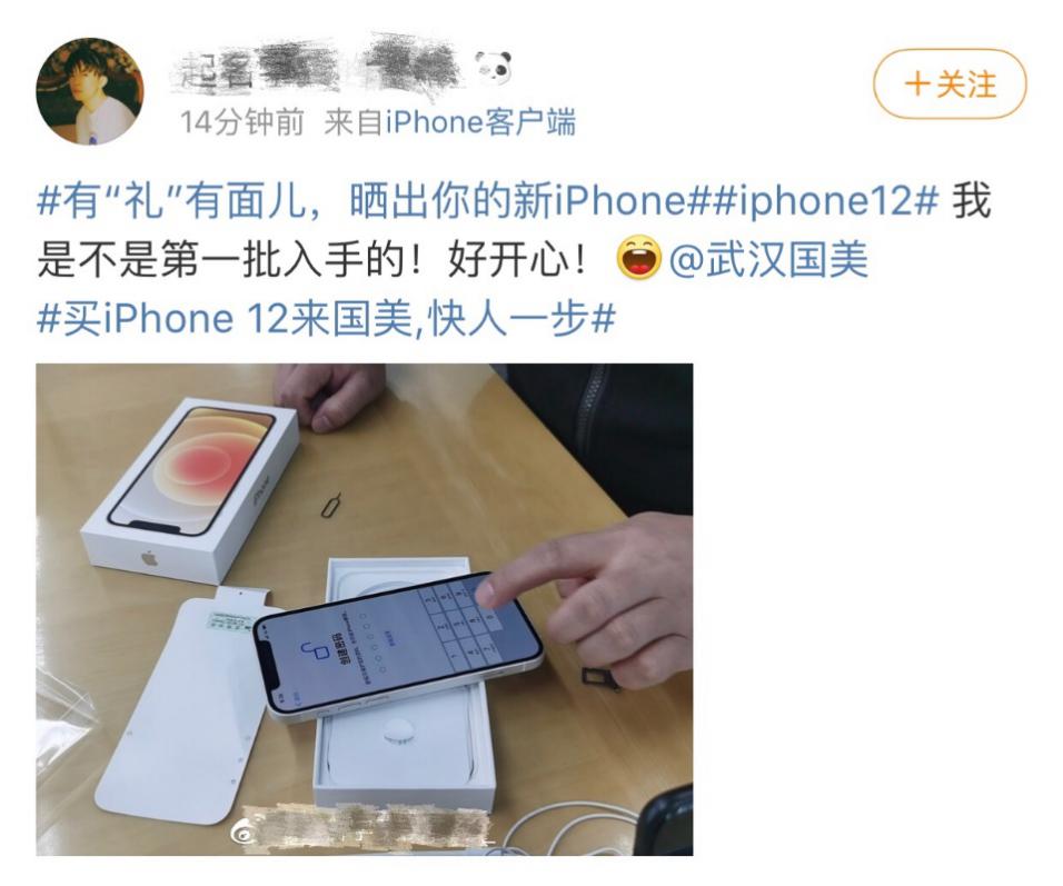還有“果粉”在收到國美閃電配送的iPhone12后,第一時(shí)間就微博曬新機(jī):“我是不是第一批入手的!好開心!”還配上了一個(gè)張iPhone12拍出的新鮮出爐的大片。馬上就有跟帖說:“你就是微博今日最佳最靚的仔!”。