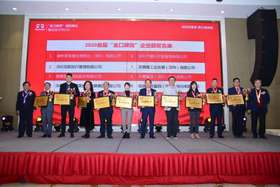 據(jù)悉,歷經(jīng)兩個(gè)月的時(shí)間,此次金口碑獎(jiǎng)評(píng)選辦公室共收到了108家企業(yè),549家商戶參選,投票共計(jì)86646張,通過(guò)資格審查,調(diào)查核實(shí)、企業(yè)走訪及嚴(yán)謹(jǐn)細(xì)致的專家評(píng)審,龍華區(qū)10家知名企業(yè)——御林軍有害生物防治(深圳)有限公司、深圳亞聯(lián)投行管理有限公司、穩(wěn)健醫(yī)療用品股份有限公司、深圳市書香門第投資發(fā)展集團(tuán)有限公司、深圳市安宏基房地產(chǎn)開(kāi)發(fā)有限公司、深圳市譽(yù)興飲食管理有限公司、英泰隆工業(yè)發(fā)展(深圳)有限公司、中尊富彥(深圳)實(shí)業(yè)有限公司、程德馨官醬園(深圳)股份有限公司、深圳市恒冠投資實(shí)業(yè)有限公司以及萬(wàn)眾城家居、大浪商業(yè)中心及優(yōu)城等30家知名商戶榮膺“金口碑獎(jiǎng)”稱號(hào),頒獎(jiǎng)典禮現(xiàn)場(chǎng)均給予榮譽(yù)表彰。