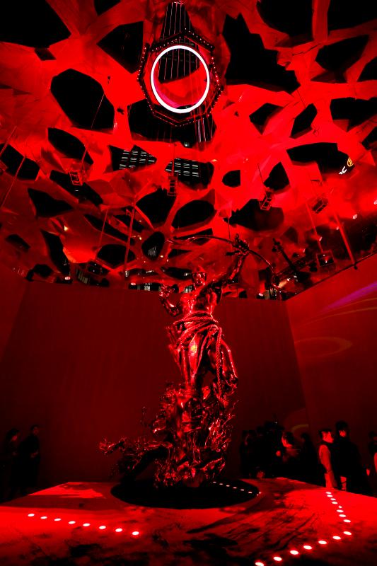 大型沉浸式藝術(shù)裝置“赤子心”橫跨了平安金融中心商場(chǎng)九至十層平臺(tái),總占地面積近四千平方米。在展出十五件大型雕塑作品的同時(shí),將光影藝術(shù)與聲音藝術(shù)巧妙融合,串聯(lián)起虛擬影像與現(xiàn)實(shí)空間,以闡釋純粹、無(wú)畏的赤子之心。“赤子心”使觀眾走入藝術(shù)品內(nèi)部、探索藝術(shù)家的內(nèi)心深處,通過(guò)親身參與展覽并與之對(duì)話,從而理解“其大無(wú)外,其小無(wú)內(nèi),世界即內(nèi)心投射”的本質(zhì)。