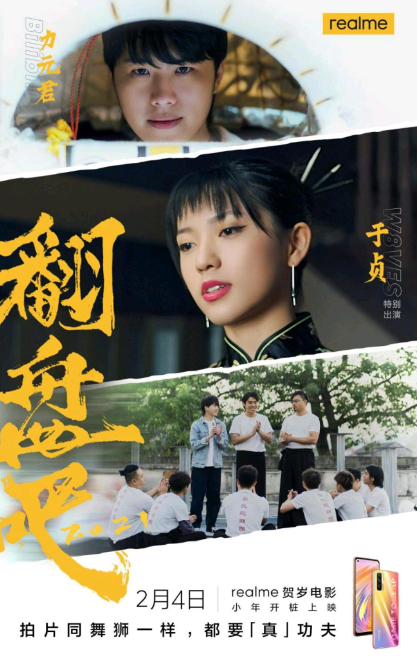 賀歲微電影《翻盤吧2021》以中國(guó)傳統(tǒng)民間藝術(shù)舞獅為背景,講述了廣東醒獅武館新一代傳承人阿正通過(guò)不懈的努力,聯(lián)合師兄弟一起振興武館,并在B站UP主力元君的鼓勵(lì)下,用真我V15國(guó)潮錦鯉手機(jī)拍攝醒獅視頻,體現(xiàn)年輕一代敢于突破傳統(tǒng),重振武館,推廣及傳承傳統(tǒng)文化。此外,個(gè)性鮮明的說(shuō)唱新星于貞也參與演出,共同演繹“越努力越幸運(yùn)”的翻盤故事。