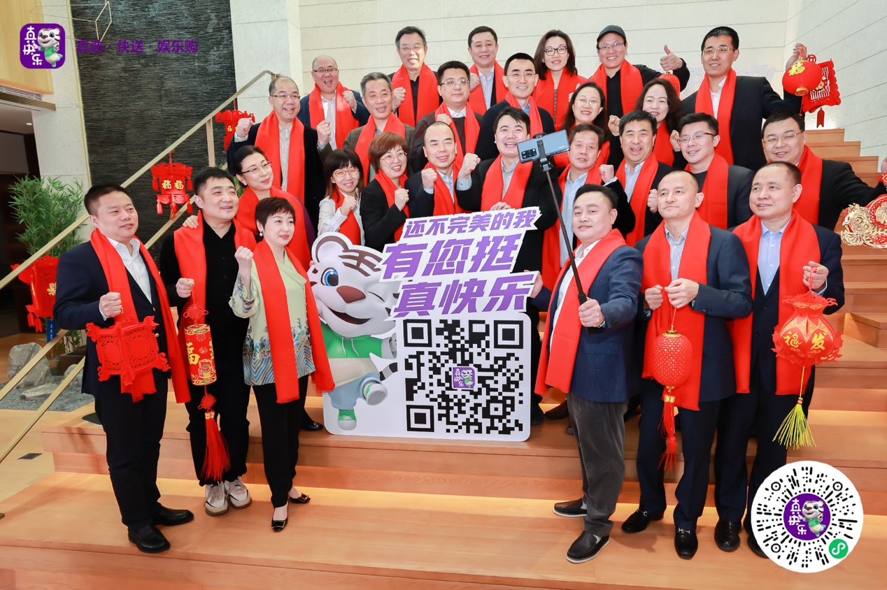 他還表示,“今天元宵節(jié),我特別邀請(qǐng)全國(guó)消費(fèi)者,掃碼‘真快樂(lè)’A PP,來(lái)‘真快樂(lè)’體驗(yàn)!”合影時(shí),黃光裕帶頭玩起了自拍,他牽著“真快樂(lè)小虎”,特別提議在這個(gè)快樂(lè)的節(jié)日,大家一起為“真快樂(lè)”A PP打C ALL。他帶領(lǐng)高管們向全體國(guó)美員工、各界合作伙伴、全國(guó)消費(fèi)者,一起發(fā)出“還不完美的我,有您挺!真快樂(lè)!”的熱情邀請(qǐng)和真摯祝福,將元宵國(guó)美全家福快樂(lè)定格。