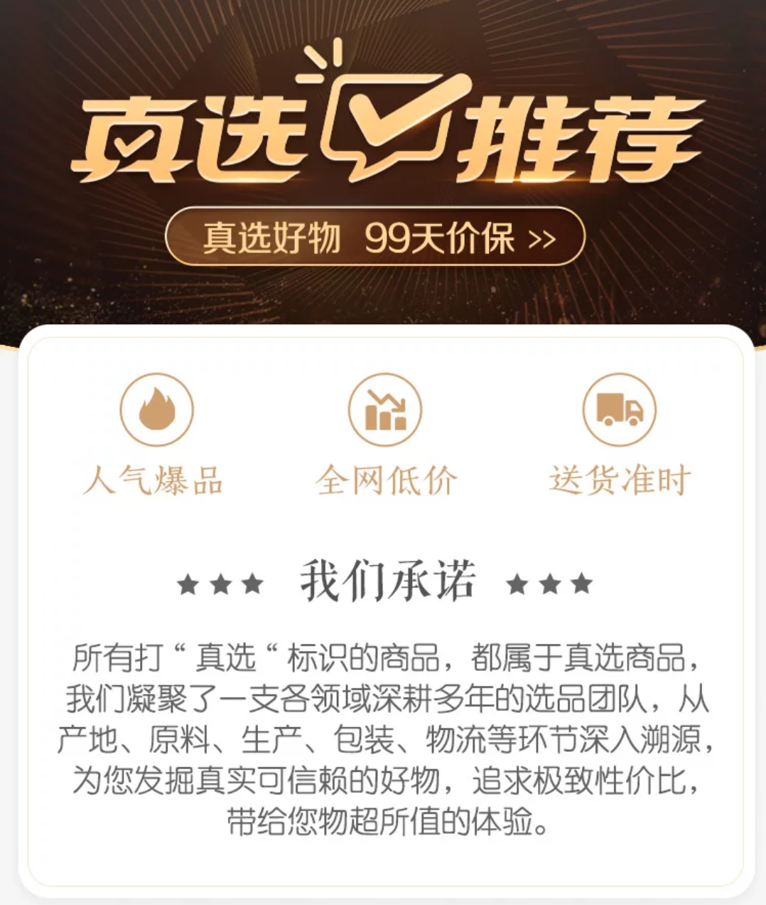 “真快樂(lè)”從誕生初始就承擔(dān)著這份重任,并且依托價(jià)美物好的“真選”策略,贏得消費(fèi)者的心。把“真快樂(lè)”這三個(gè)簡(jiǎn)單的字拆分解讀,“真”指的是嚴(yán)選商家、真選商品;“快”指的是快送、準(zhǔn)時(shí)達(dá);“樂(lè)”則是商家和消費(fèi)者能夠娛樂(lè)賣(mài)、娛樂(lè)買(mǎi)、分享樂(lè),這是“真快樂(lè)”的三大內(nèi)涵,也是提升消費(fèi)者購(gòu)物體驗(yàn),提升忠誠(chéng)度和復(fù)購(gòu)粘性的3大關(guān)鍵。
