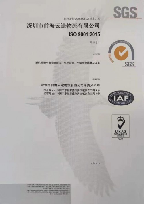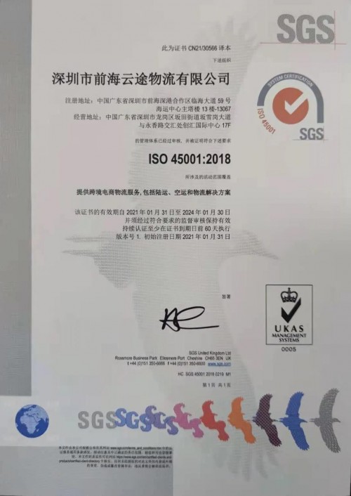 東方網(wǎng)2021年3月11日訊 繼2020年初獲得ISO9001質(zhì)量管理體系認(rèn)證后,近日云途物流順利通過(guò)專(zhuān)家組評(píng)審,再次獲得由國(guó)際公認(rèn)的檢驗(yàn)、鑒定、測(cè)試和認(rèn)證機(jī)構(gòu)SGS頒發(fā)的ISO14001環(huán)境管理體系、ISO45001職業(yè)健康與安全管理體系認(rèn)證。