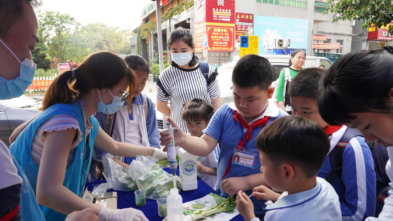 “檢測出沒有問題后,我就能放心給小孫女吃了。”活動現(xiàn)場,看到快檢工作人員在對各類食品進行快檢演示,買菜路過的居民紛紛將購買的蔬菜送往快檢。