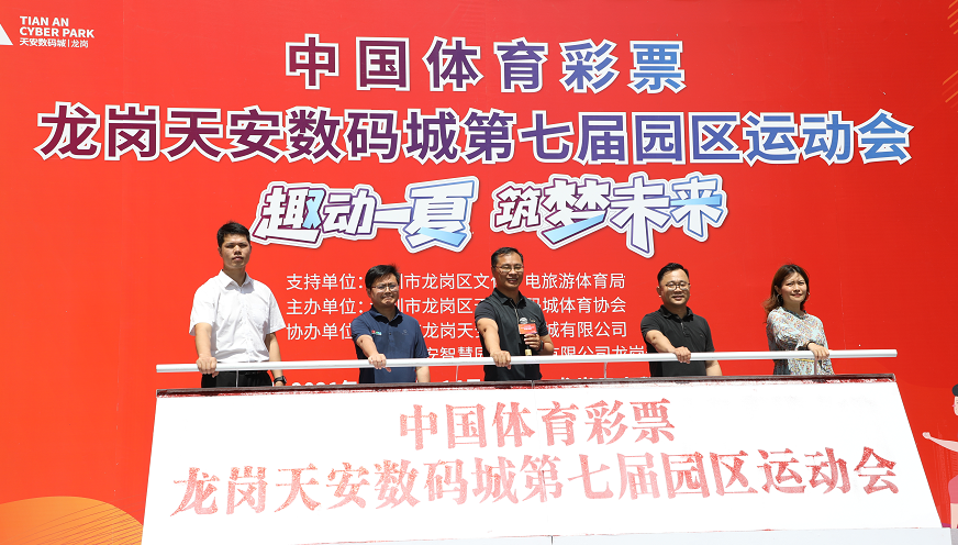 本屆運動會以“趣動一夏筑夢未來”為主題,由深圳市龍崗區(qū)文化廣電旅游體育局支持,深圳市龍崗區(qū)天安數(shù)碼城體育協(xié)會主辦,深圳市龍崗天安數(shù)碼新城有限公司、深圳天安智慧園區(qū)運營有限公司龍崗分公司協(xié)辦。深圳市龍崗區(qū)文化廣電旅游體育局副局長李震、龍崗天安數(shù)碼城副總經(jīng)理陳文鑫、龍崗區(qū)文化廣電旅游體育局體育事業(yè)促進科副科長任翠華、天安智慧園區(qū)運營有限公司總經(jīng)理助理龍崗分公司總經(jīng)理梁義榮、龍崗天安數(shù)碼城產(chǎn)業(yè)事業(yè)部總監(jiān)白麗等領(lǐng)導嘉賓為本屆運動會推桿啟動開幕。