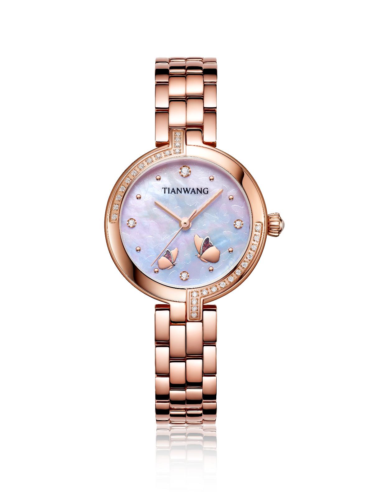 這次合作的腕表,沿襲了天王表的精品品質(zhì)和設(shè)計(jì)美學(xué),有點(diǎn)“小確幸”的風(fēng)格,整體很秀氣但是細(xì)節(jié)都誠(chéng)意滿滿。表是蝴蝶的天空,指針是蝴蝶的舞步。表盤(pán)采用蝴蝶壓印貝母,在藍(lán)寶石玻璃表鏡下,兩只立體蝴蝶翩然起舞,人如蝴蝶,蝴蝶像人,都迷戀這花花世界,想要縱情暢游其中。腕表刻度和表圈由璀璨皓石點(diǎn)綴,3點(diǎn)、6點(diǎn)、9點(diǎn)、12點(diǎn)使用較大皓石,使得整個(gè)表盤(pán)錯(cuò)落有致,富有層次感。搭配夢(mèng)幻南瓜把的,極具浪漫色彩。玫瑰金色不銹鋼表殼,給人以優(yōu)雅炫目之感,質(zhì)感鋼帶,光澤度明亮,搭配不銹鋼蝴蝶扣,錦上添花,佩戴效果自然舒適。