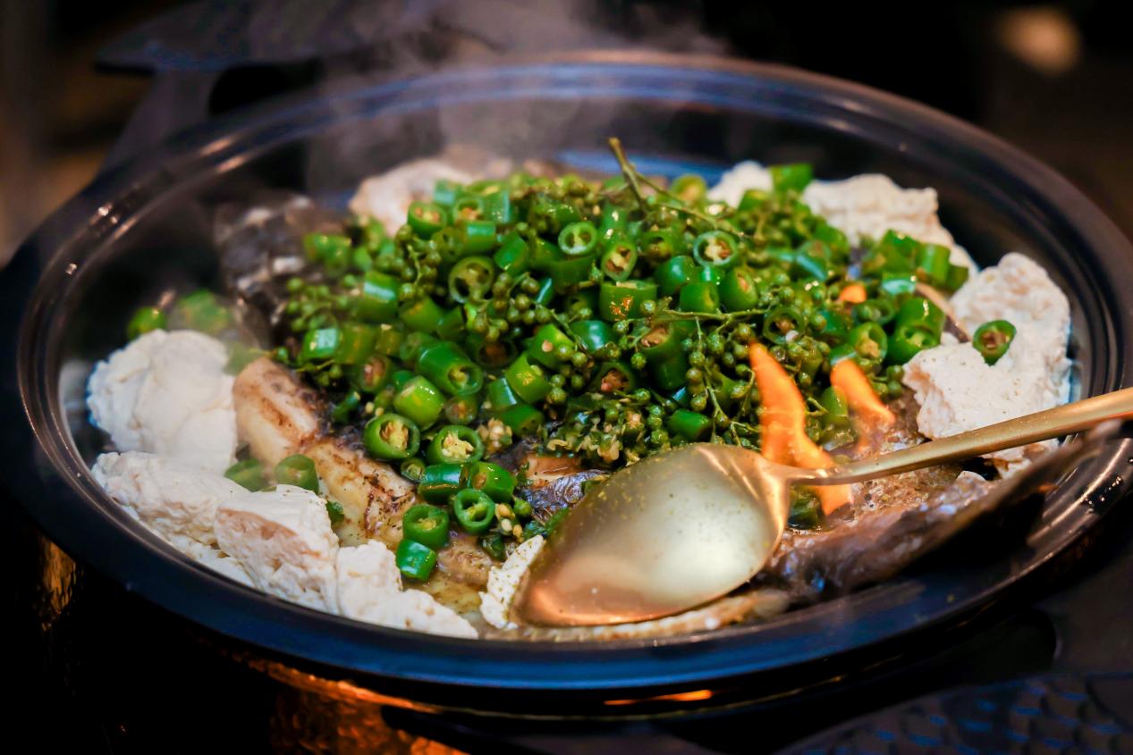 除了視覺(jué)感官外,探魚(yú)全新lab店的產(chǎn)品完全顛覆了探魚(yú)以往的產(chǎn)品結(jié)構(gòu)和產(chǎn)品體驗(yàn),所有的產(chǎn)品都以“極致釋放”為準(zhǔn)則,涼菜更冰爽,熱菜更火熱,更高的顏值、味道更加的讓人印象深刻,有好玩、驚喜的感覺(jué)。探魚(yú)的經(jīng)典產(chǎn)品“鮮青椒烤魚(yú)”也在lab店有口味上和形式上的升級(jí),味道上加重了核心的“爽麻”的口感,上菜形式也增加了添酒增香、點(diǎn)火炙烤等充滿儀式感的內(nèi)容。提高菜品品質(zhì)的同時(shí),也使顧客擁有了更別致的用餐體驗(yàn)。