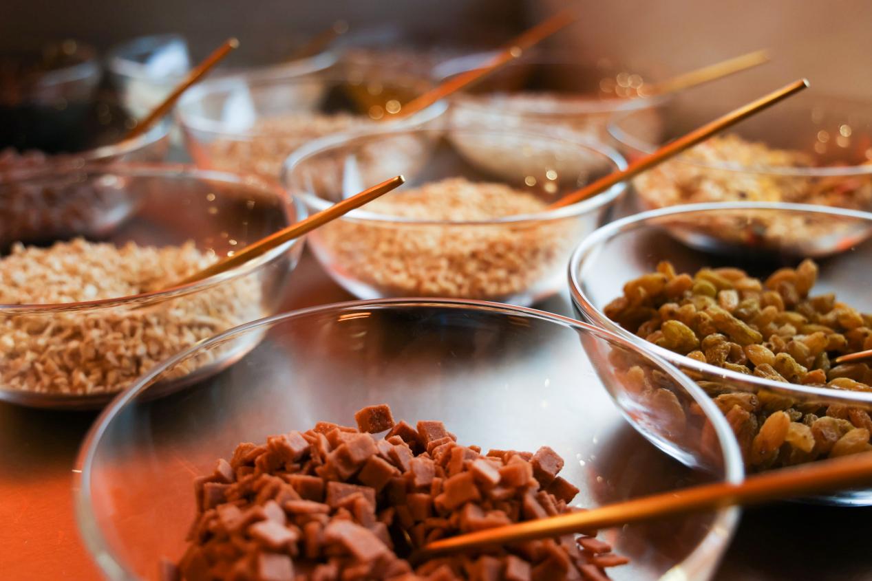 除了產(chǎn)品口味、形式上的革新,探魚(yú)的lab店還新增了“DIY”專(zhuān)區(qū)。茶水、水果、涼菜、冰粉都可以在DIY區(qū)根據(jù)自己的口味隨意搭配,增加了消費(fèi)者在用餐過(guò)程中的可玩性。值得一提的是,探魚(yú)的DIY冰粉取消了目前市場(chǎng)中常見(jiàn)的或固定或多樣的搭配方式,為消費(fèi)者提供了3種冰粉基底,18種各色配料,搭配方式和用量全部由消費(fèi)者自己選擇。不同口味質(zhì)地的配料為消費(fèi)者提供了至少17000+種配比方式,這樣的設(shè)置潛在性地增加了用餐的社交功能,在整個(gè)就餐過(guò)程中,消費(fèi)者被擁有了“體驗(yàn)者”與“傳播者”的功能性身份,擁有了一場(chǎng)“就餐+游戲”的個(gè)性體驗(yàn)。