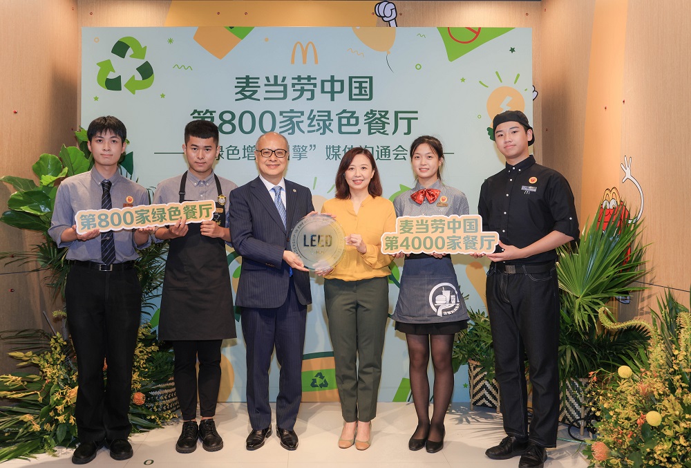 美國綠色建筑委員會(huì)北亞區(qū)董事總經(jīng)理杜日生為麥當(dāng)勞中國第800家LEED認(rèn)證餐廳授牌