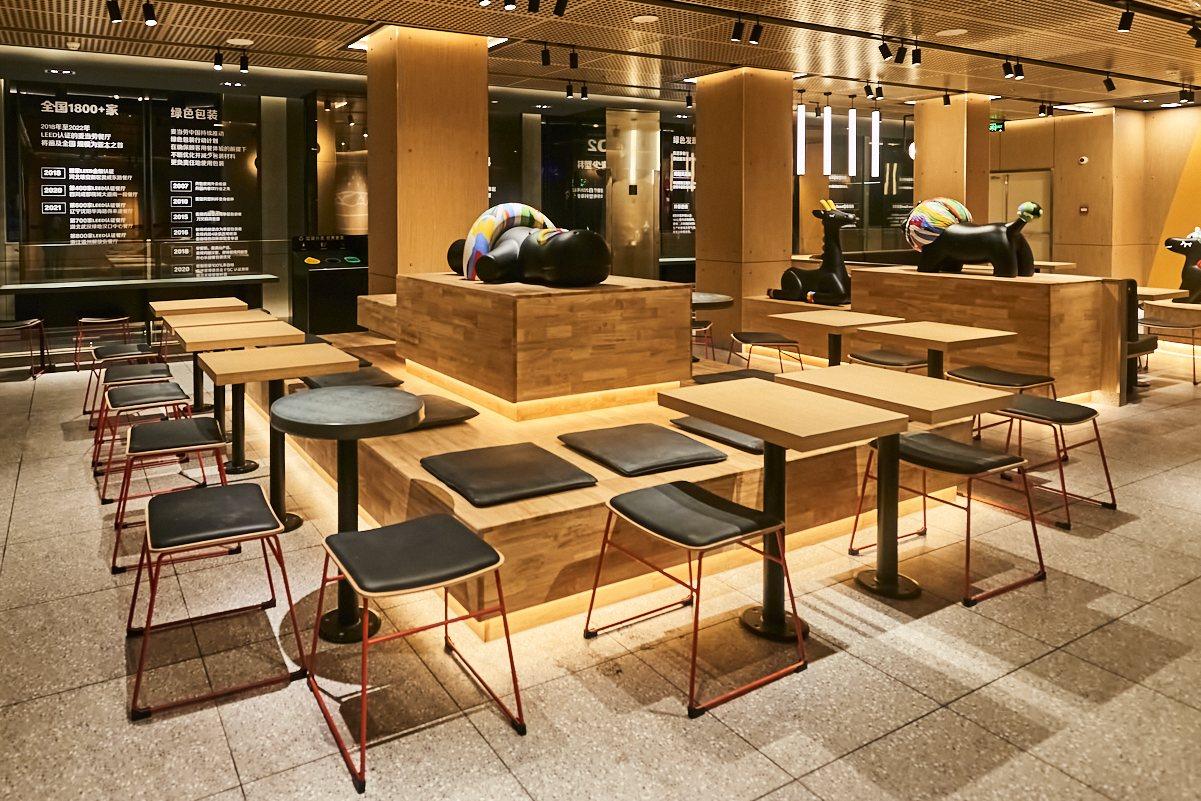 據(jù)了解,在這家餐廳中,麥當(dāng)勞中國也探索了更多綠色創(chuàng)新的新應(yīng)用,包括首次使用更節(jié)能舒適的照明系統(tǒng);首次使用回收再造家具,100%海洋塑料回收制成的餐廳座椅;可回收的室內(nèi)裝飾等。