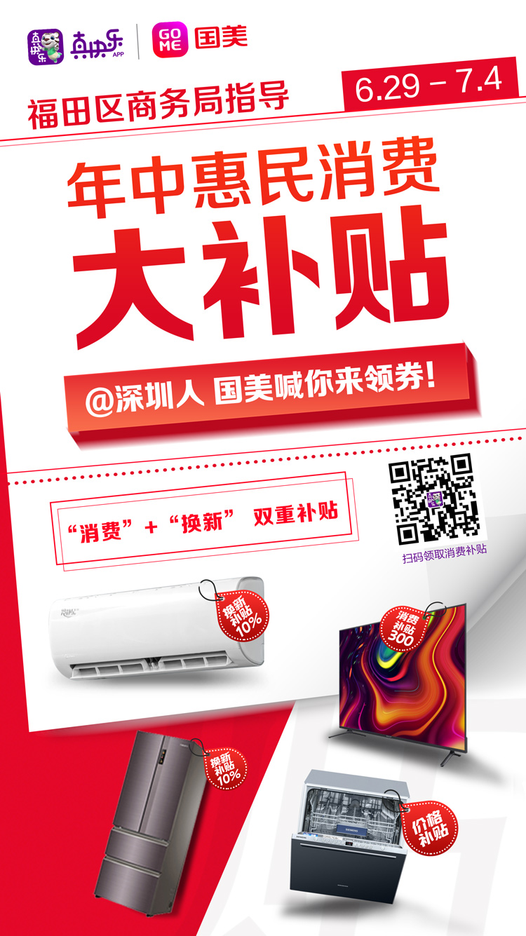 據(jù)悉,為獻(xiàn)禮建黨100周年,在深圳市福田區(qū)商務(wù)局的指導(dǎo)下,深圳國美和“真快樂”APP誠意滿滿的推出了“年中惠民消費(fèi)大補(bǔ)貼”活動(dòng),國美這次“年中消費(fèi)大補(bǔ)貼”將從6月21日起一直延續(xù)到7月4日,4500萬補(bǔ)貼發(fā)放,助力深圳地區(qū)消費(fèi)者升級(jí)品質(zhì)生活。而且所有活動(dòng)商品原有低價(jià)基礎(chǔ)上進(jìn)行補(bǔ)貼直降,還有超多驚喜好價(jià)等你來搶,此波羊毛絕對(duì)放心薅,一起來看看吧!