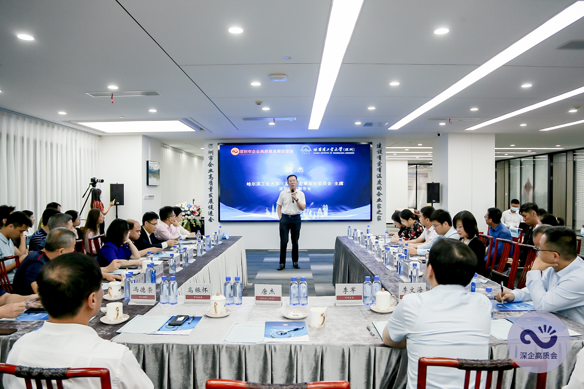 深圳市原副市長、哈爾濱工業(yè)大學(xué)(深圳)發(fā)展規(guī)劃委員會主席唐杰,深圳市決策咨詢委員會專職常務(wù)副主任高振懷,深圳市企業(yè)高質(zhì)量發(fā)展促進會名譽會長龐大同,深圳市市場監(jiān)督管理局黨組成員、副局長李軍,深圳市工商業(yè)聯(lián)合會黨組成員、專職副主席馮德崇等專家、學(xué)者以及相關(guān)部門負責(zé)人等參加活動。