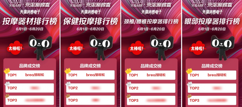 倍輕松的產(chǎn)品地位從創(chuàng)新、科技上很好地體現(xiàn)出來,而更重要的是在消費(fèi)市場(chǎng)上,倍輕松仍占據(jù)了便攜式按摩器行業(yè)的重要份額。自倍輕松宣布肖戰(zhàn)成為全球代言人以來,這家21年高端按摩器品牌在線上銷售數(shù)據(jù)十分優(yōu)異,在目前中國(guó)購(gòu)物網(wǎng)站巨頭的天貓、京東平臺(tái)榮獲多個(gè)品類排行榜第一。在618這個(gè)重要的消費(fèi)日節(jié)點(diǎn),倍輕松輕易獲得京東開門紅,僅4天就達(dá)到全網(wǎng)銷售額過億的成績(jī)。不僅在線上,倍輕松布局的線下門店多達(dá)150+家,各大機(jī)場(chǎng)、高鐵站、shopping mall均可以看到倍輕松的身影。據(jù)官方數(shù)據(jù),倍輕松在2021年上半年天貓平臺(tái)榮獲眼部按摩器單品品類排行榜第一如此以來,可以說倍輕松是便攜式按摩器線上平的領(lǐng)軍品牌。