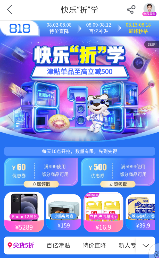 以818大促為例,8月12日至18日期間,“真快樂”以“特價直降”“百億津貼”和“巔峰秒殺”三重活動讓利消費者,一重更比一重優(yōu)惠。活動福利覆蓋食品酒水、服飾鞋包、家居家裝、日用百貨、母嬰玩具、美妝個護、家用電器等全品類品質(zhì)好物。與此同時,消費者不僅可以享受“真快樂”提供的折扣優(yōu)惠,還可以通過國美“折上折A PP”領(lǐng)券,再次享受優(yōu)惠,實現(xiàn)折上再折,折上再減。無需費心拼單、湊單,一鍵領(lǐng)取優(yōu)惠券,折扣即可到手。