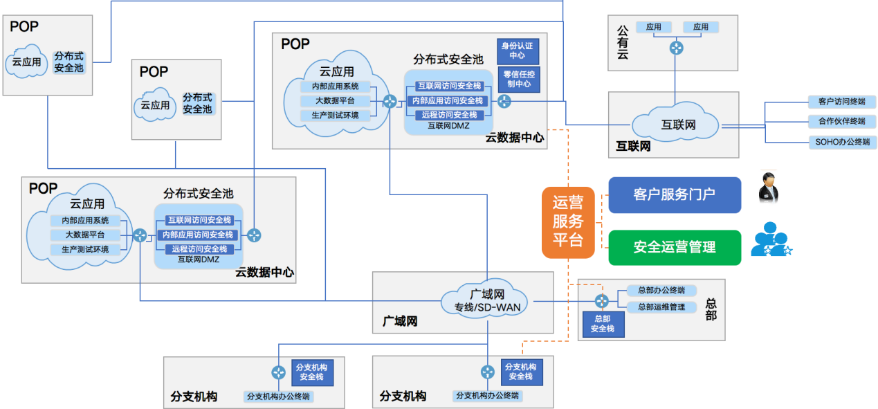 “Q-SASE的推出,充分考慮了當下國內(nèi)企業(yè)和政府機構(gòu)的實際情況和轉(zhuǎn)型需求?!蓖踯绫硎?,Q-SASE服務采用類似專有云+公有云的部署模式,通過統(tǒng)一安全架構(gòu)、分布式安全池、零信任為基礎等核心理念,為政企信息化應用提供可落地的安全訪問服務。
