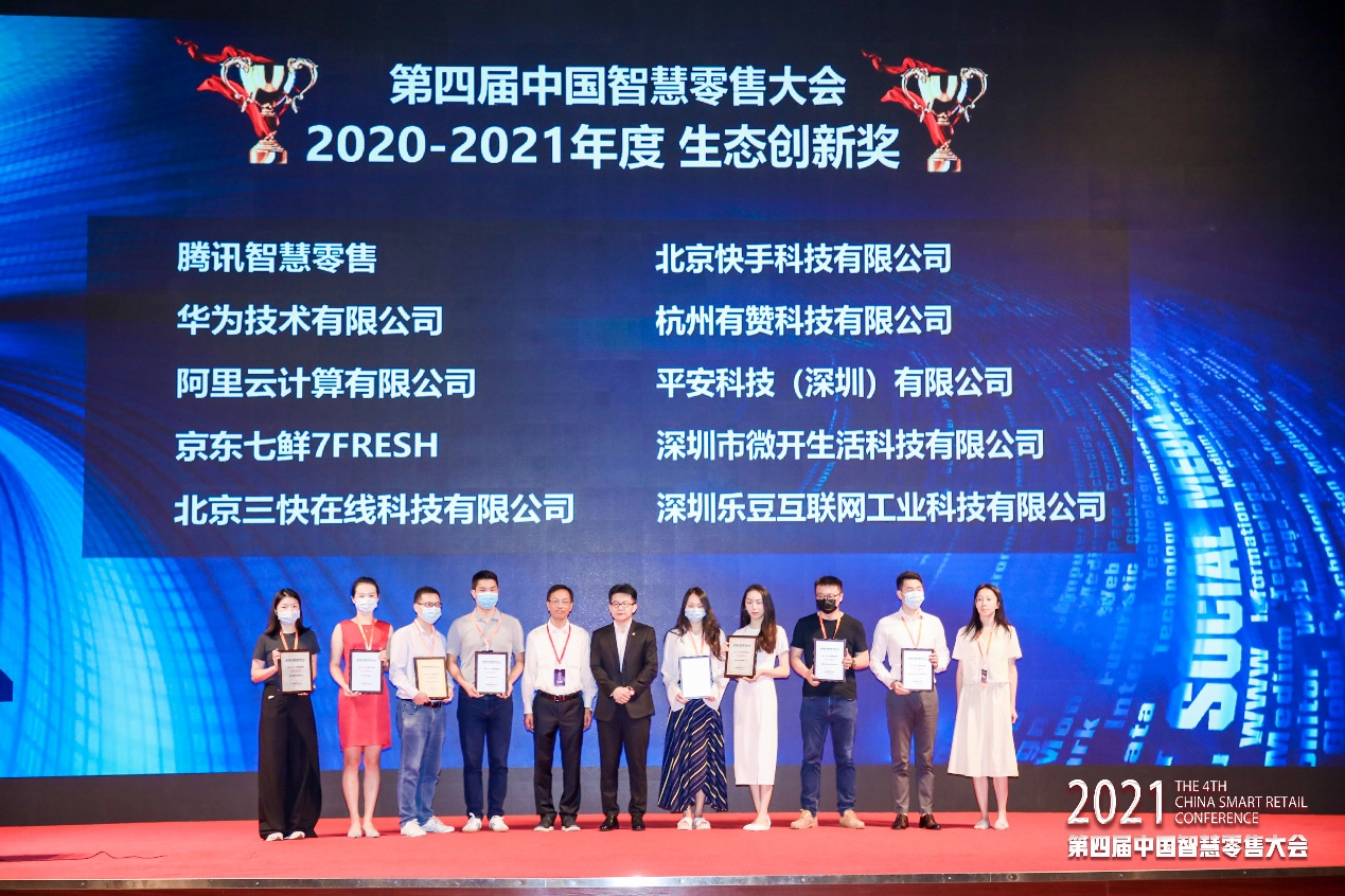 大會開幕式上頒發(fā)“2020-2021年度智慧零售系列大獎”,大會組委會從行業(yè)新技術應用創(chuàng)新;經(jīng)營、商業(yè)、組織、管理、服務等模式創(chuàng)新;全渠道、全產(chǎn)業(yè)鏈、全生產(chǎn)要素賦能等生態(tài)創(chuàng)新;領軍者推動智慧零售創(chuàng)新發(fā)展等四個維度,共頒發(fā):新技術應用創(chuàng)新獎、模式創(chuàng)新獎、生態(tài)創(chuàng)新獎、創(chuàng)新人物獎四大獎項。華潤萬家、靈智數(shù)科、有贊、樂信等企業(yè)獲此榮譽,天虹股份譚曉華、百果園焦岳等人獲得創(chuàng)新人物獎。