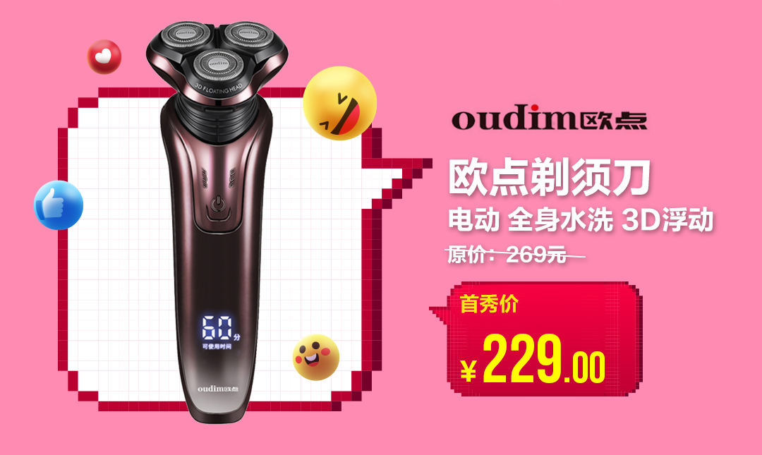 在女生眼中,白白凈凈的男生更具吸引力,而胡子拉碴的男生難免會(huì)被貼上不講衛(wèi)生、不愛干凈、不注重自己形象的標(biāo)簽。鑒于此,“真快樂”APP為男同胞們帶來了一款實(shí)力硬核的歐點(diǎn)電動(dòng)剃須刀,它采用了雙環(huán)圓弧刀網(wǎng),讓剃須更快、更凈、更爽。這樣的心水好物,首秀價(jià)只要229元,助你秒變小鮮肉。